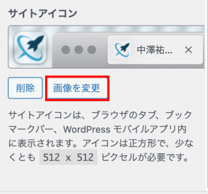 • サイトアイコン(ファビコン)→画像を変更:512px × 512px 以上の正方形画像をアップロード